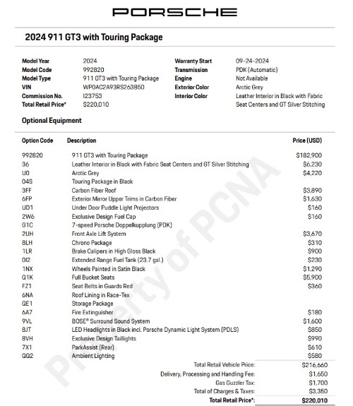2024 PORSCHE 911 GT3 TOURING | 4.0L H6 502HP | 7-SPEED PDK | RWD | ARCTIC GREY | CARBON FIBER ROOF | SPORT CHRONO PACKAGE | FRONT AXLE LIFT SYSTEM | FULL BODY PPF | BOSE SURROUND SOUND | FULL BUCKET SEATS