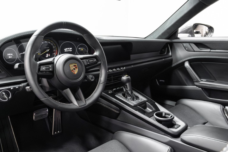 Inside, the cabin is equally focused. Full Bucket Seats anchor the driver in place, wrapped in Black leather with GT Silver stitching and fabric seat centers for a true driver?s specification. The Sport Chrono Package enhances performance capability with configurable drive modes and track-focused functionality, while the Front Axle Lift System ensures usability without compromising stance. Ambient Lighting Plus, BOSE Surround Sound, and the Storage Package bring modern comfort and practicality to this track-bred machine.