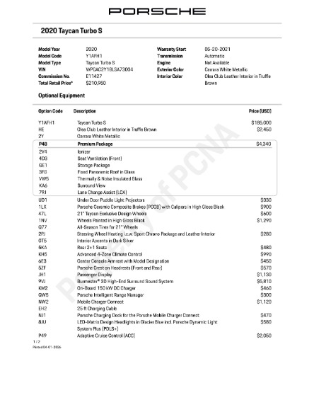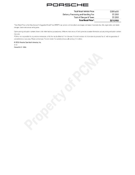 Base MSRP of $185,000. Original MSRP of $210,950